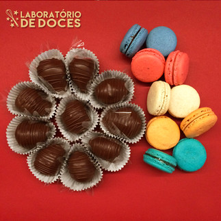 Nossos produtos são produzidos sem conservantes e com ingredientes naturais, as casquinhas dos macarons levam um blend de farinha de castanhas (amêndoa e caju), caras, açúcar e nada mais! Já os recheios sem leite são feitos apenas de açúcar, frutas e chocolate sem leite.